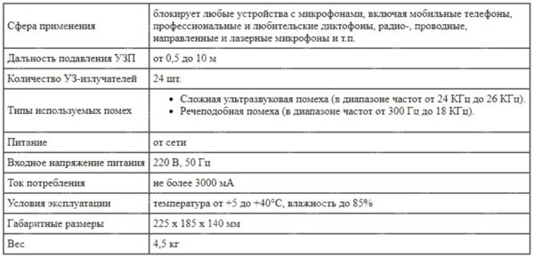 Блокировка работы любых микрофонов на расстоянии | до 10 метров |